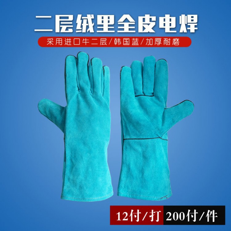 • 產(chǎn)品名稱: 二層絨里全皮電焊手套-韓國(guó)藍(lán)